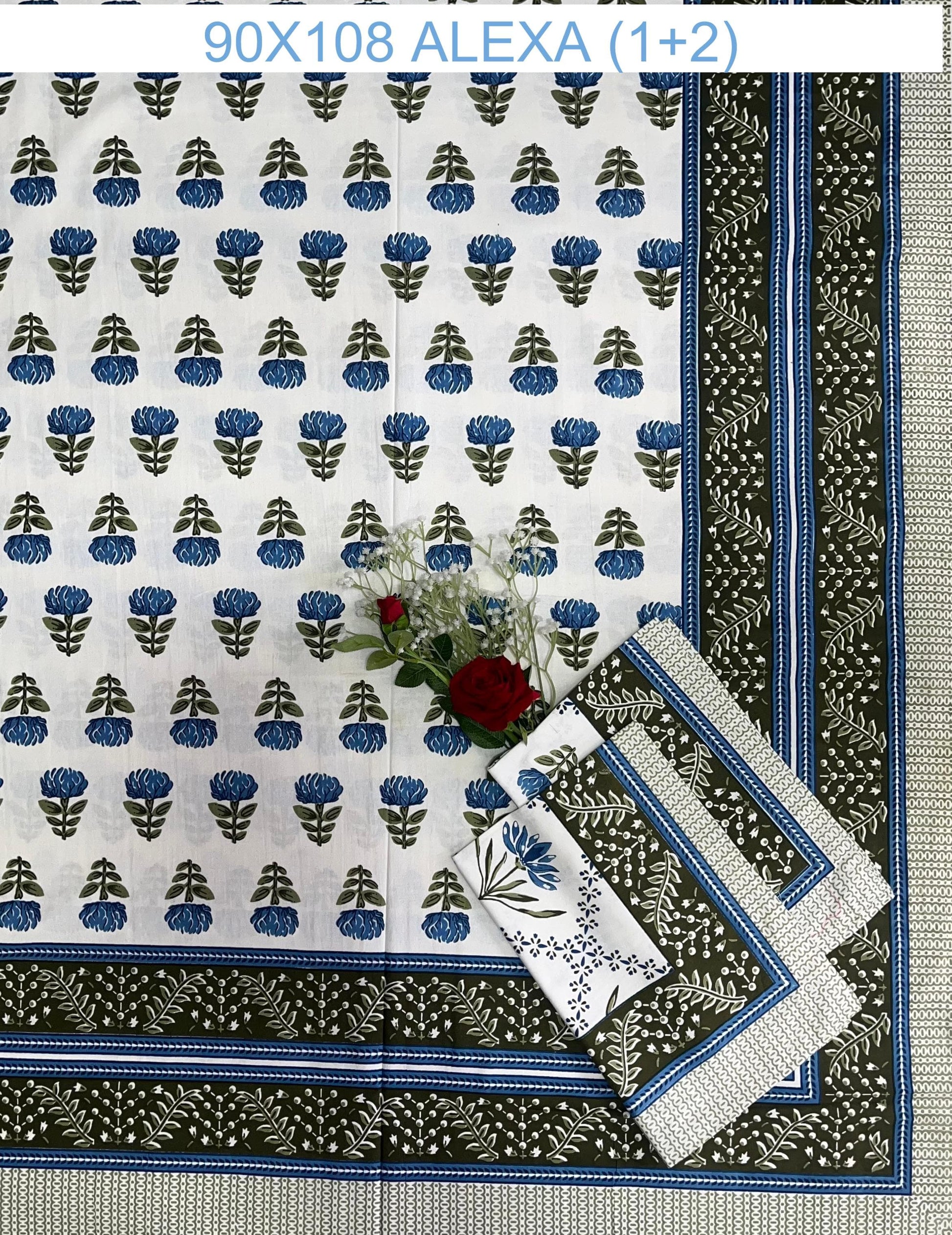 Alexa King Size Green Blue Printed Bed Sheets with Pillow Covers