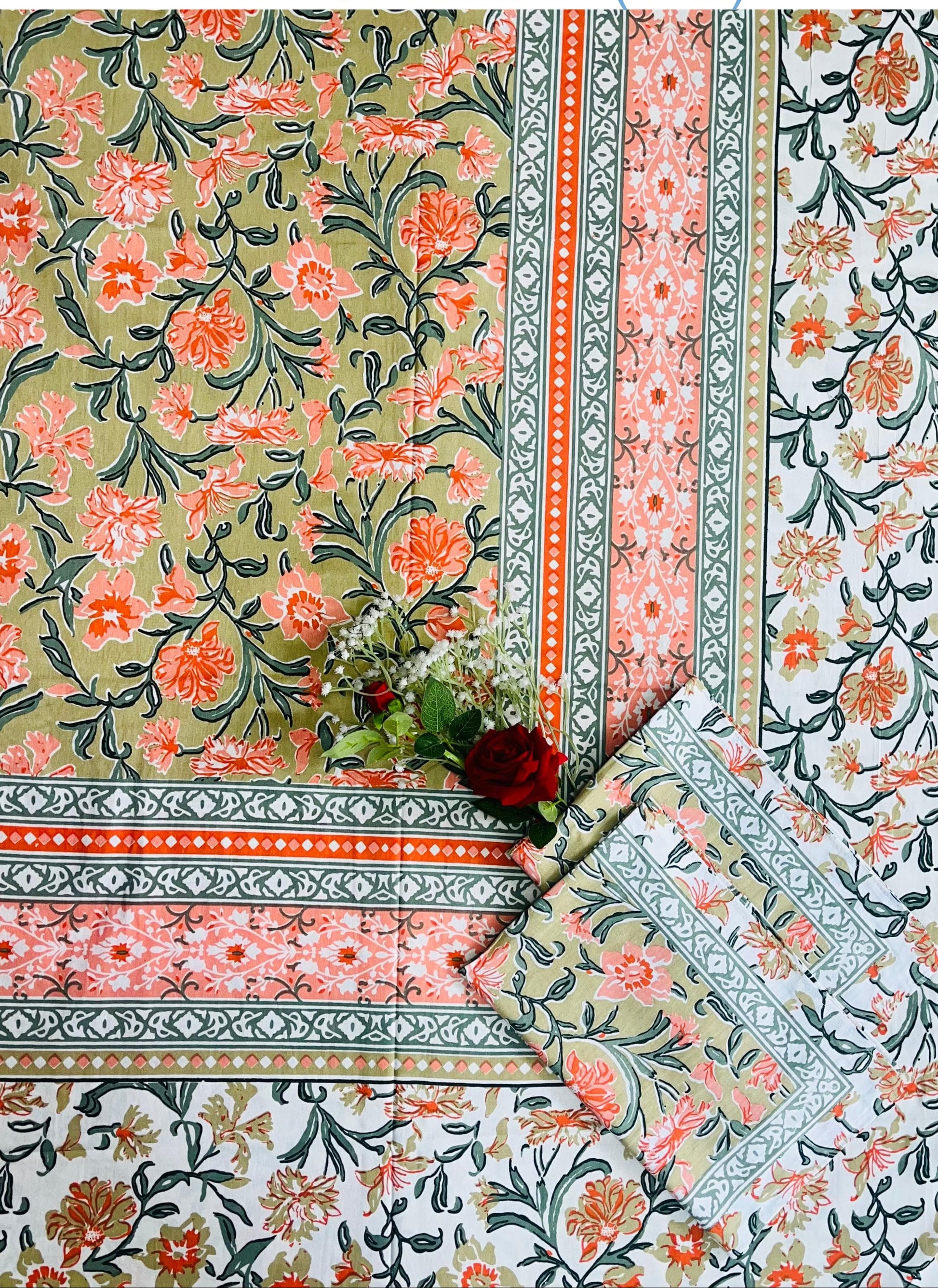 Alexa King Size Orange Green Printed Bed Sheets with Pillow Covers