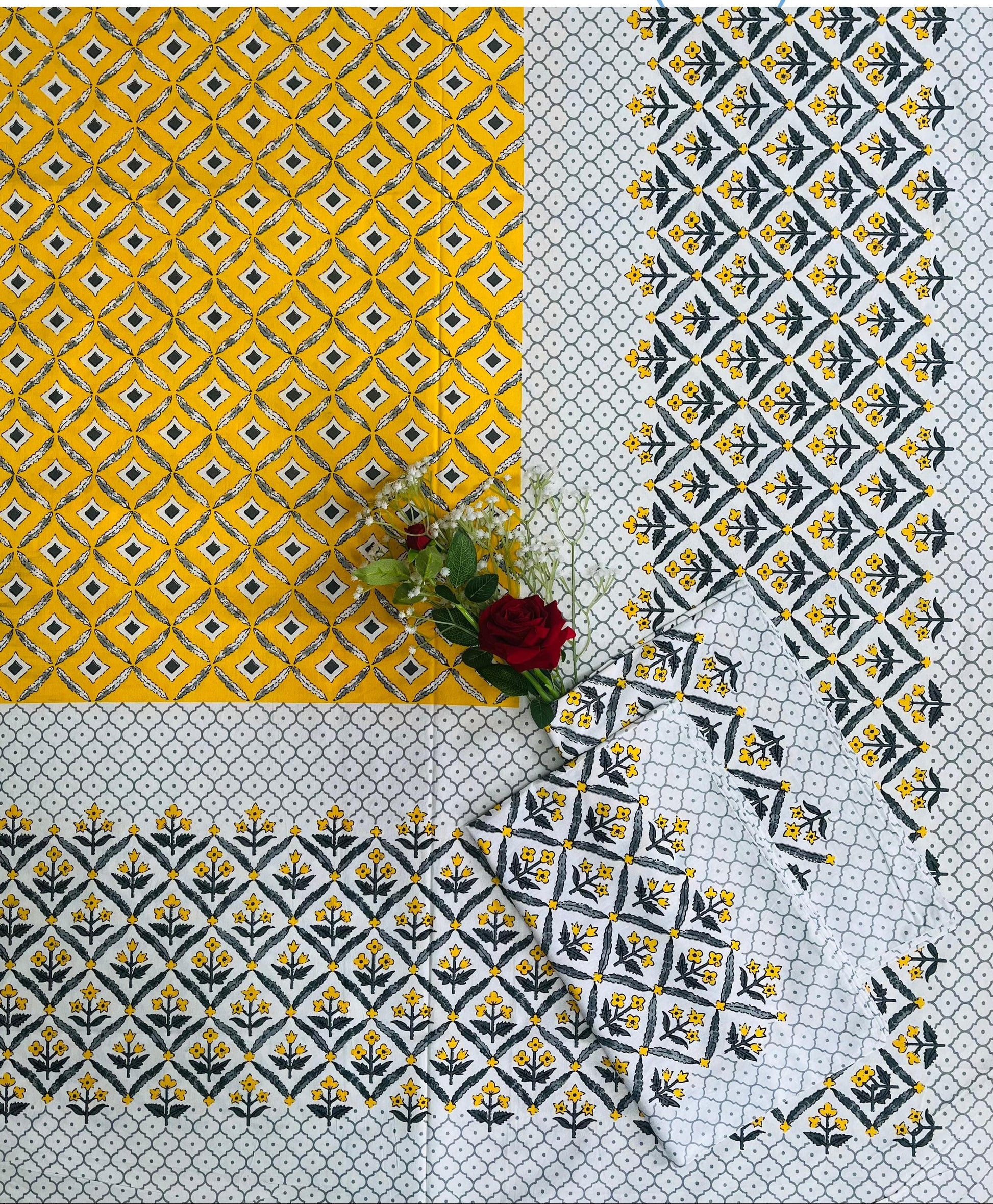 Alexa King Size yellow black Printed Bed Sheets with Pillow Covers