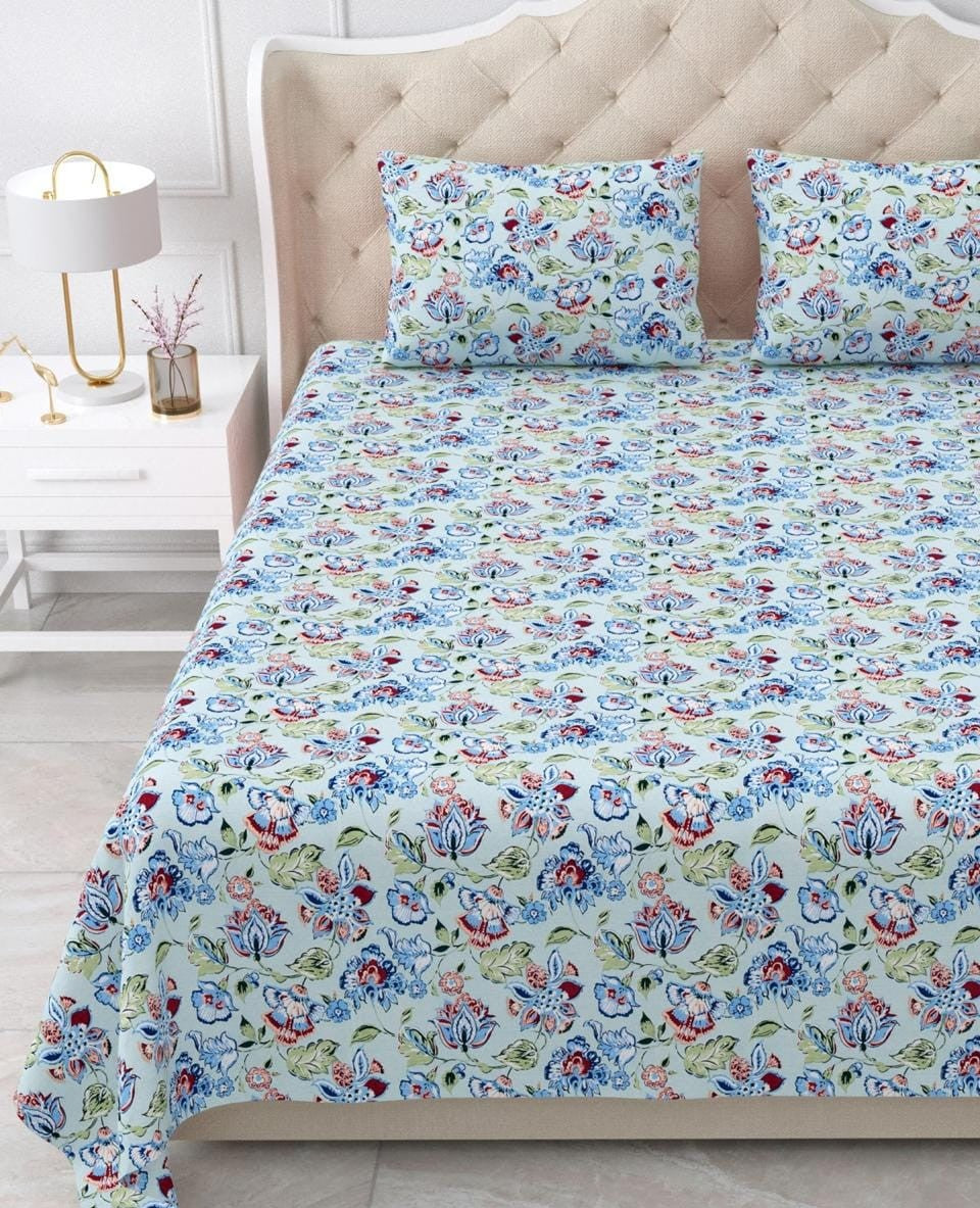 Nidhivan King Size Cotton Sky Blue Floral Printed Premium Bed Sheet